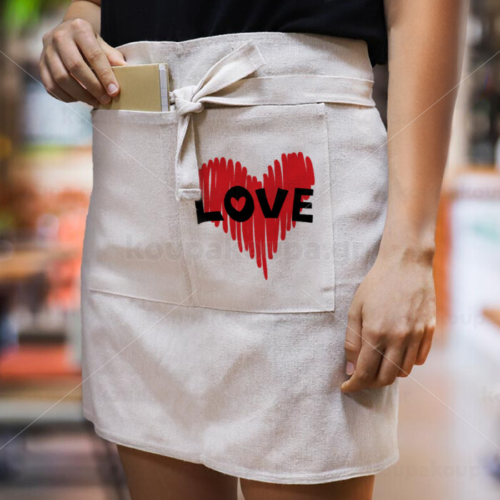 I Love You red heart, Ποδιά Μέσης με διπλή τσέπη Barista/Bartender, Beige