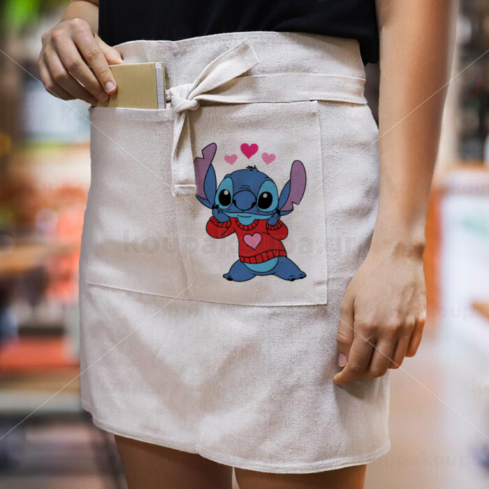 Stitch heart, Ποδιά Μέσης με διπλή τσέπη Barista/Bartender, Beige
