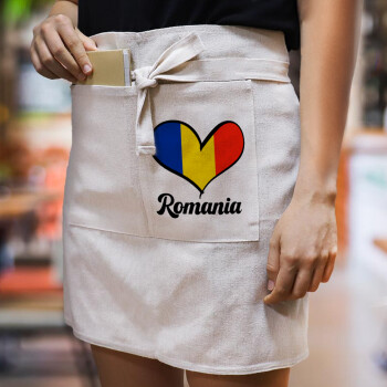 Romania flag, Ποδιά Μέσης με διπλή τσέπη Barista/Bartender, Beige