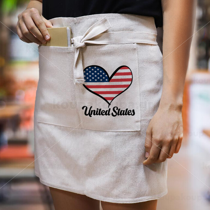 USA flag, Ποδιά Μέσης με διπλή τσέπη Barista/Bartender, Beige