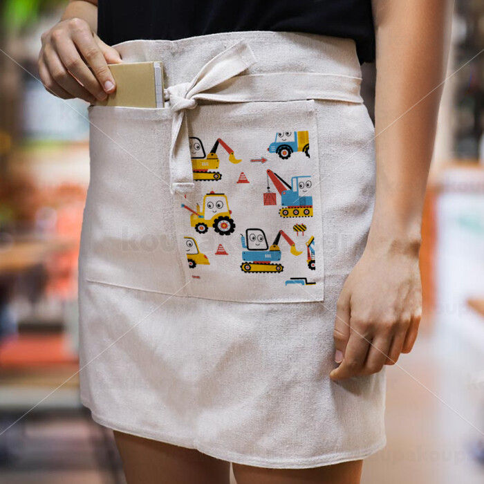 Hand drawing building truck, Ποδιά Μέσης με διπλή τσέπη Barista/Bartender, Beige