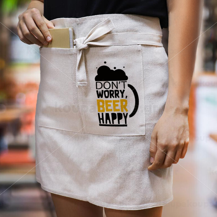 Don't worry BEER Happy, Ποδιά Μέσης με διπλή τσέπη Barista/Bartender, Beige