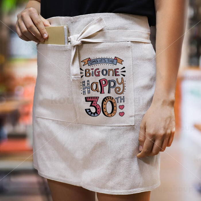 Big one Happy 30th, Ποδιά Μέσης με διπλή τσέπη Barista/Bartender, Beige