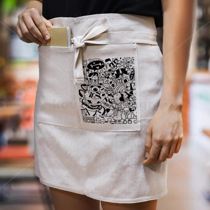 Unisex adult barista waist apron Provides greater comfort, as it leaves the upper body free during work. It allows workers to carry essential tools due to its double pocket, such as an opener, pen and various cocktail accessories.