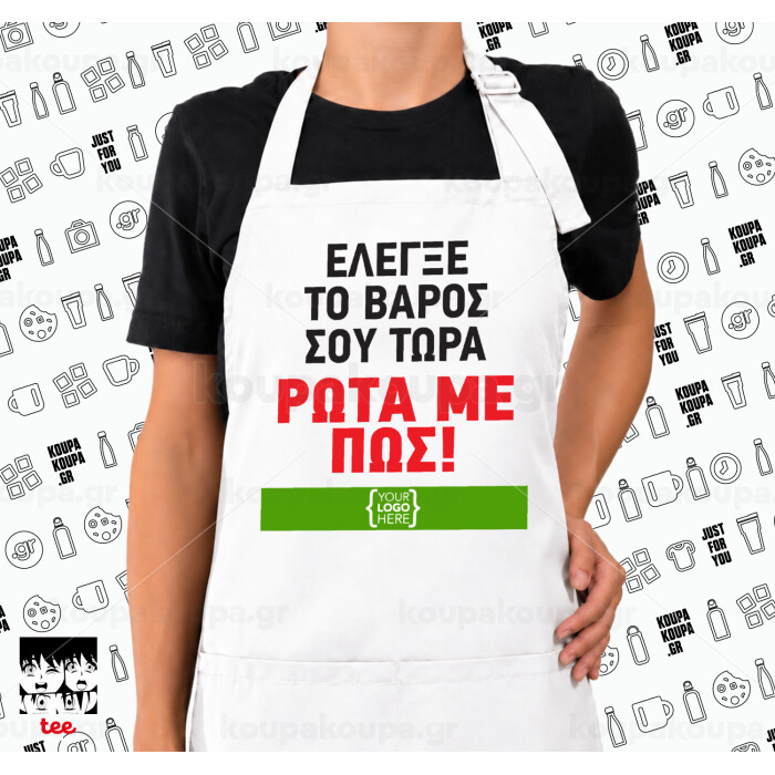 Έλεγξε το βάρος σου ρώτα με πως! {your logo here}, Ποδιά μακριά Σεφ ολόσωμη με τσέπες white (ΕΝΗΛΙΚΩΝ)