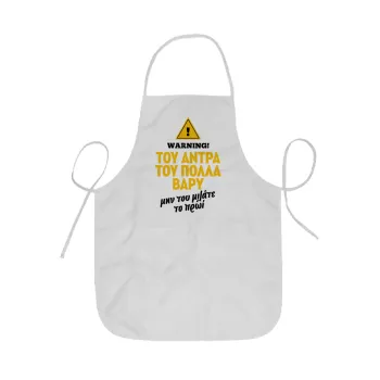 Large waist tiesFixed neck cordPolyester fabric 180grsWash at 40ºType ChefType Full body shortColor Whitewith Plan Yeswith Pocket NoWaterproof Yes