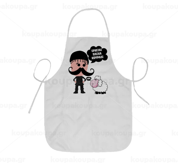 Κρητικός "Έρχεται Πάσχα κουράδι", Ποδιά Σεφ ολόσωμη κοντή Παιδική (44x62cm)
