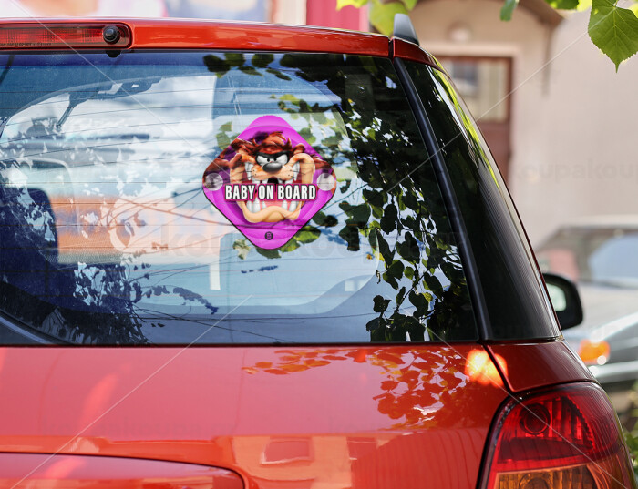 Taz, Baby On Board wooden car sign with suction cups (16x16cm)
