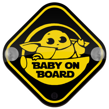 Baby yoda on board, Baby On Board wooden car sign with suction cups (16x16cm)