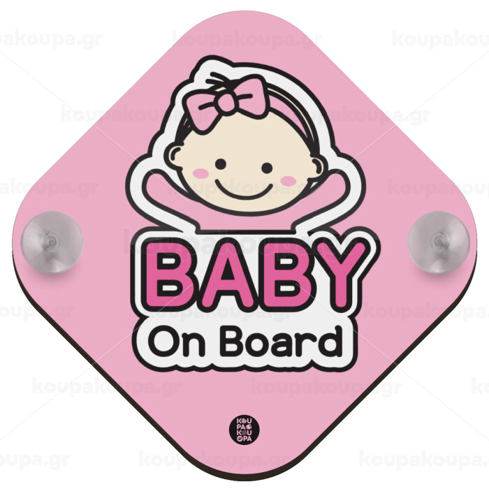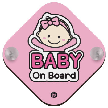 Basic Girl, Baby On Board wooden car sign with suction cups (16x16cm)