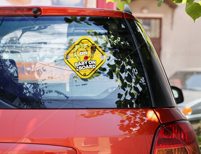 The Simpsons, Baby On Board wooden car sign with suction cups (16x16cm)