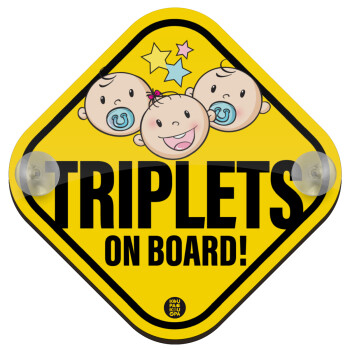 Triplets on board babys, Baby On Board wooden car sign with suction cups (16x16cm)