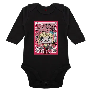 Harley Quinn (Χάρλεϊ Κουίν), Μακρυμάνικο βρεφικό φορμάκι, 0-18 μηνών, ΜΑΥΡΟ, 100% Organic Cotton