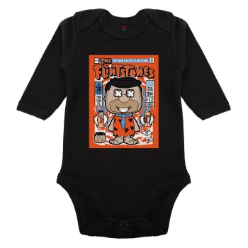 The flintstones, Μακρυμάνικο βρεφικό φορμάκι, 0-18 μηνών, ΜΑΥΡΟ, 100% Organic Cotton