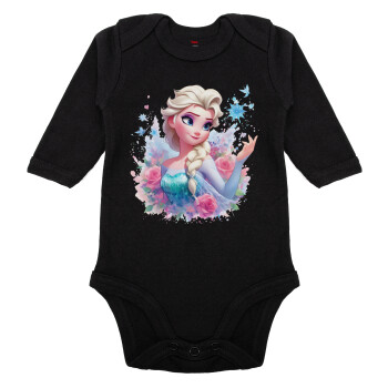 Elsa Princess, Μακρυμάνικο βρεφικό φορμάκι, 0-18 μηνών, ΜΑΥΡΟ, 100% Organic Cotton