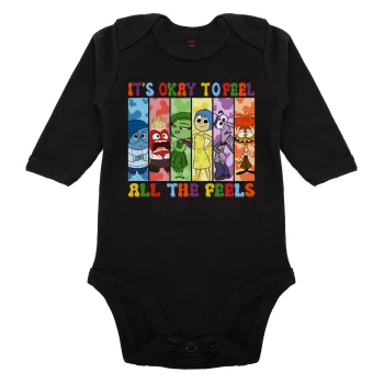 Inside Out It's Okay To Feel All The Feels , Μακρυμάνικο βρεφικό φορμάκι, 0-18 μηνών, ΜΑΥΡΟ, 100% Organic Cotton