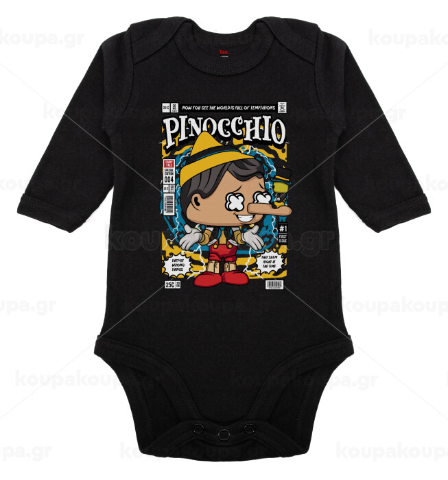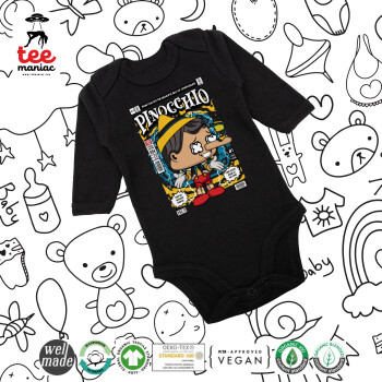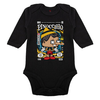 Pinocchio, Μακρυμάνικο βρεφικό φορμάκι, 0-18 μηνών, ΜΑΥΡΟ, 100% Organic Cotton