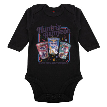 Ramyeon Huntrix, Μακρυμάνικο βρεφικό φορμάκι, 0-18 μηνών, ΜΑΥΡΟ, 100% Organic Cotton