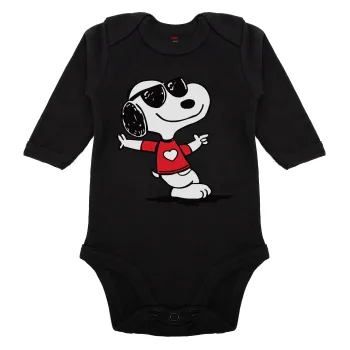 Snoopy καρδούλα, Μακρυμάνικο βρεφικό φορμάκι, 0-18 μηνών, ΜΑΥΡΟ, 100% Organic Cotton