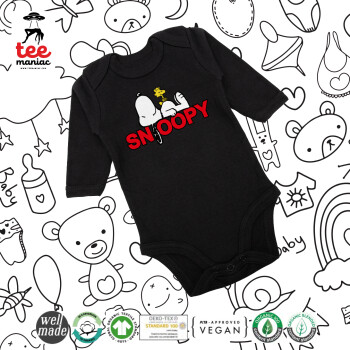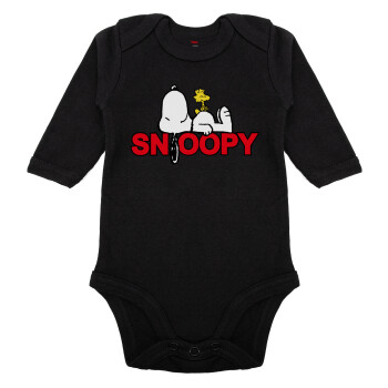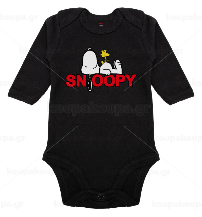 Snoopy sleep, Μακρυμάνικο βρεφικό φορμάκι, 0-18 μηνών, ΜΑΥΡΟ, 100% Organic Cotton