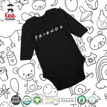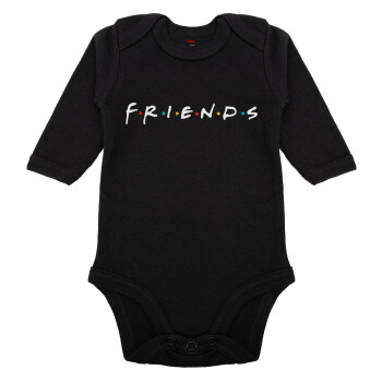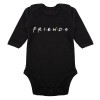 Friends, Μακρυμάνικο βρεφικό φορμάκι, 0-18 μηνών, ΜΑΥΡΟ, 100% Organic Cotton