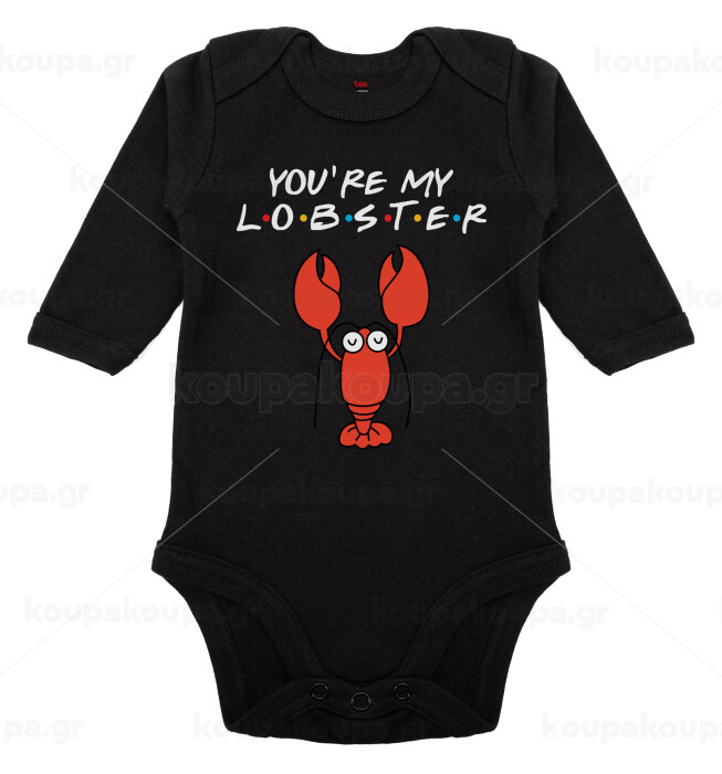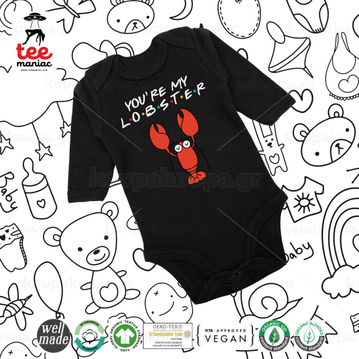 Friends you're my lobster, Μακρυμάνικο βρεφικό φορμάκι, 0-18 μηνών, ΜΑΥΡΟ, 100% Organic Cotton