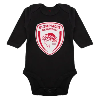 Olympiacos B.C., Μακρυμάνικο βρεφικό φορμάκι, 0-18 μηνών, ΜΑΥΡΟ, 100% Organic Cotton