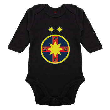 FC Steaua Bucuresti (FCSB), Μακρυμάνικο βρεφικό φορμάκι, 0-18 μηνών, ΜΑΥΡΟ, 100% Organic Cotton