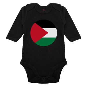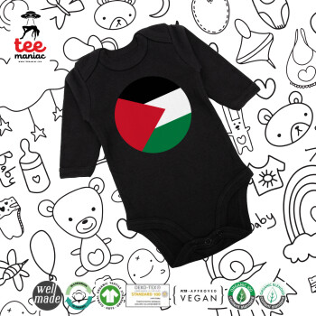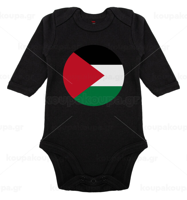 Palestine Flag, Μακρυμάνικο βρεφικό φορμάκι, 0-18 μηνών, ΜΑΥΡΟ, 100% Organic Cotton
