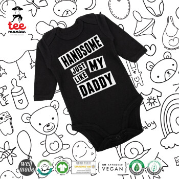 Handsome just like my Daddy, Μακρυμάνικο βρεφικό φορμάκι, 0-18 μηνών, ΜΑΥΡΟ, 100% Organic Cotton