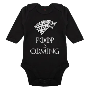 POOP Is Coming, Μακρυμάνικο βρεφικό φορμάκι, 0-18 μηνών, ΜΑΥΡΟ, 100% Organic Cotton