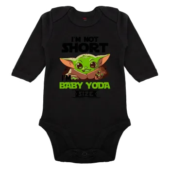 I'm not short, i'm Baby Yoda size, Μακρυμάνικο βρεφικό φορμάκι, 0-18 μηνών, ΜΑΥΡΟ, 100% Organic Cotton