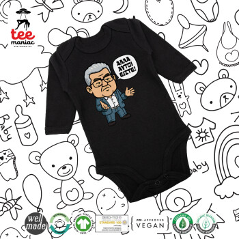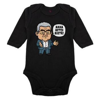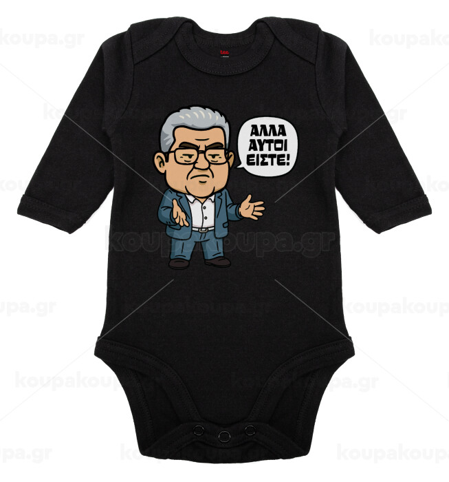 Κουτσούμπας, "Αλλά αυτοί είστε!", Μακρυμάνικο βρεφικό φορμάκι, 0-18 μηνών, ΜΑΥΡΟ, 100% Organic Cotton