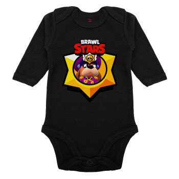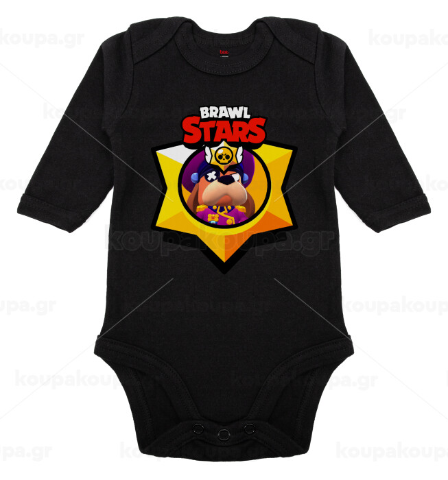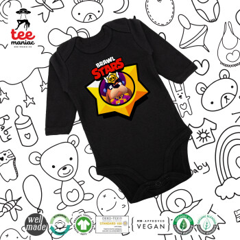 Brawl Stars Ruffs, Μακρυμάνικο βρεφικό φορμάκι, 0-18 μηνών, ΜΑΥΡΟ, 100% Organic Cotton