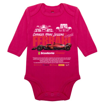 F1 Ferrari, Μακρυμάνικο βρεφικό φορμάκι, 0-18 μηνών, ΡΟΖ, 100% Organic Cotton