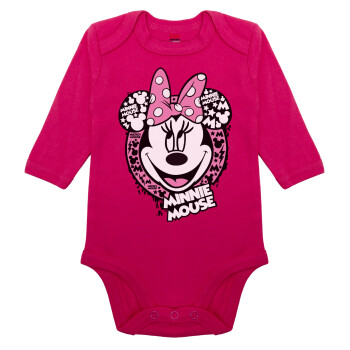 Minnie mouse, Μακρυμάνικο βρεφικό φορμάκι, 0-18 μηνών, ΡΟΖ, 100% Organic Cotton