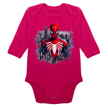 Spiderman City, Μακρυμάνικο βρεφικό φορμάκι, 0-18 μηνών, ΡΟΖ, 100% Organic Cotton