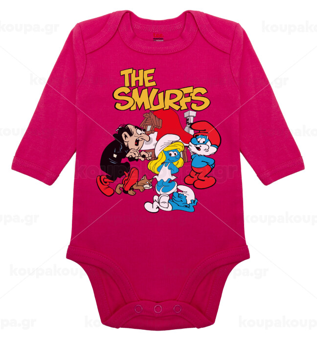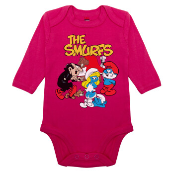 The smurfs, Μακρυμάνικο βρεφικό φορμάκι, 0-18 μηνών, ΡΟΖ, 100% Organic Cotton