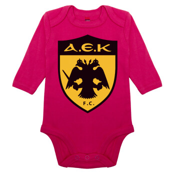 ΑΕΚ, Μακρυμάνικο βρεφικό φορμάκι, 0-18 μηνών, ΡΟΖ, 100% Organic Cotton