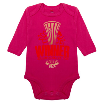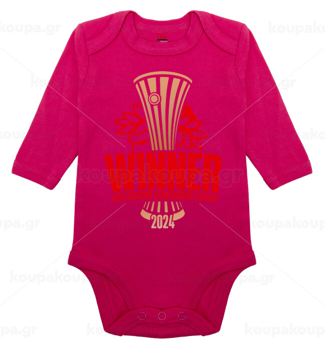 Europa Conference League WINNER, Μακρυμάνικο βρεφικό φορμάκι, 0-18 μηνών, ΡΟΖ, 100% Organic Cotton