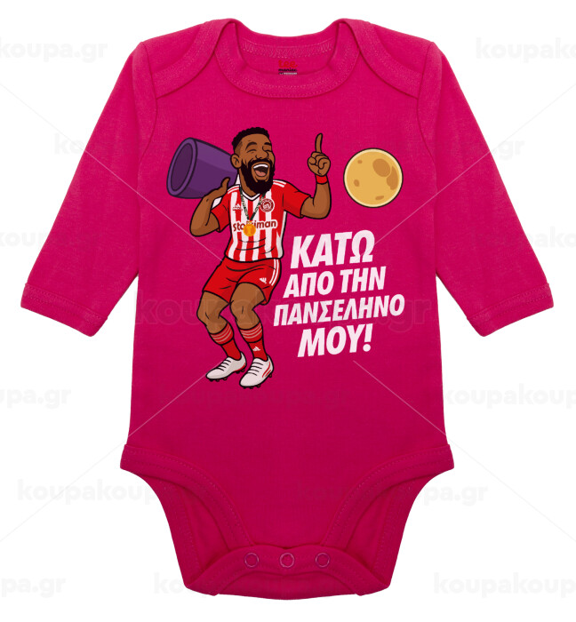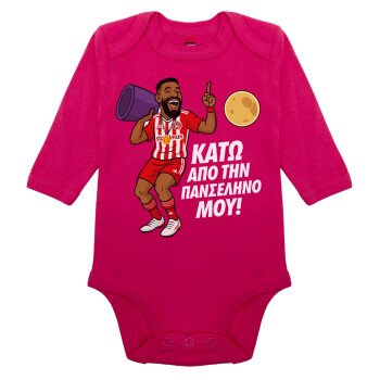 Ροντινέι, "ΚΑΤΩ ΑΠΟ ΤΗΝ ΠΑΝΣΕΛΗΝΟ ΜΟΥ!", Μακρυμάνικο βρεφικό φορμάκι, 0-18 μηνών, ΡΟΖ, 100% Organic Cotton
