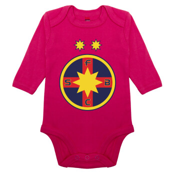 FC Steaua Bucuresti (FCSB), Μακρυμάνικο βρεφικό φορμάκι, 0-18 μηνών, ΡΟΖ, 100% Organic Cotton