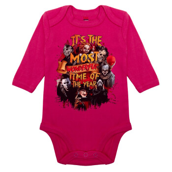 Halloween it's most wonderful time of the year, Μακρυμάνικο βρεφικό φορμάκι, 0-18 μηνών, ΡΟΖ, 100% Organic Cotton