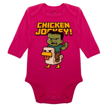 Chicken Jockey, Μακρυμάνικο βρεφικό φορμάκι, 0-18 μηνών, ΡΟΖ, 100% Organic Cotton