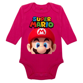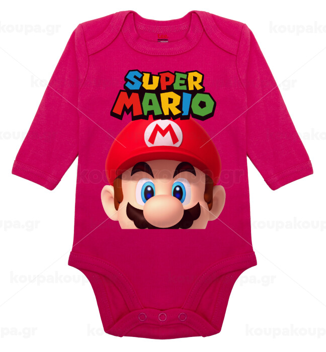 Super mario, Μακρυμάνικο βρεφικό φορμάκι, 0-18 μηνών, ΡΟΖ, 100% Organic Cotton