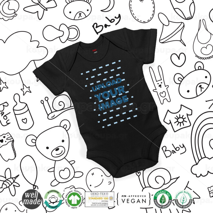 Fabric Weight: 200 g/m²Material: 100% Organic Cotton, ring-spun and combed for a soft textureTreatment: Pre-washed to prevent shrinkageStyle: American-style bodysuit for easy applicationDetails: Rib-knit cuffs for better fitFasteners: 3 nickel-free buttons at the bottom for easy diaper changes, color matched to the fabric