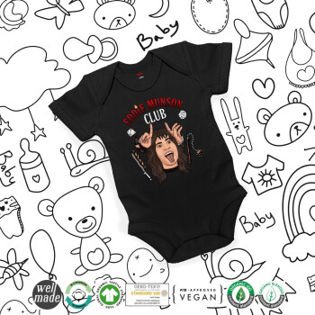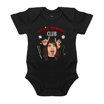 Eddie Munson, Hellfire CLub, Stranger Things, Βρεφικό φορμάκι μωρού, 0-18 μηνών, ΜΑΥΡΟ, 100% Organic Cotton, κοντομάνικο