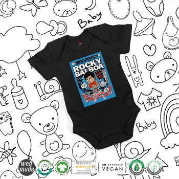 Rocky Balboa, Βρεφικό φορμάκι μωρού, 0-18 μηνών, ΜΑΥΡΟ, 100% Organic Cotton, κοντομάνικο