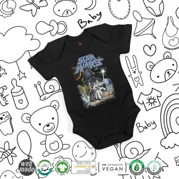 Star Wars, Βρεφικό φορμάκι μωρού, 0-18 μηνών, ΜΑΥΡΟ, 100% Organic Cotton, κοντομάνικο