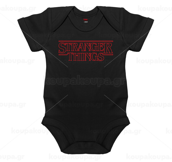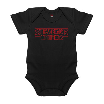 Stranger Things Logo, Βρεφικό φορμάκι μωρού, 0-18 μηνών, ΜΑΥΡΟ, 100% Organic Cotton, κοντομάνικο